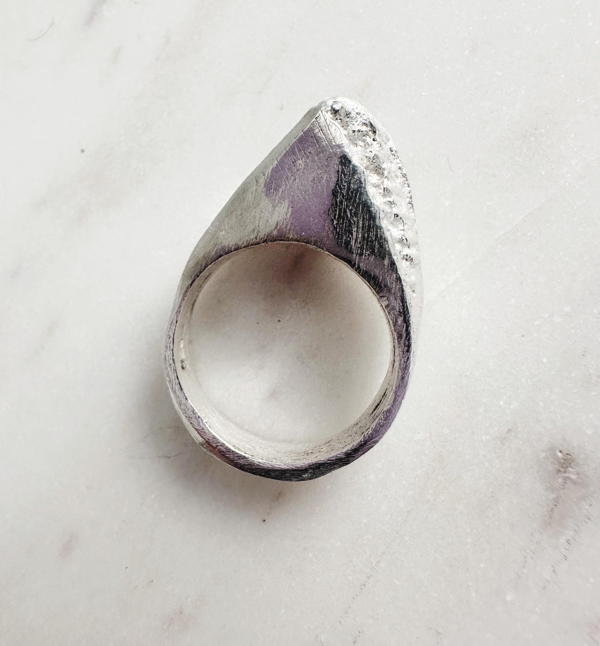 Handmade Sandcasted Organic Textured Abstract Shark Inspired Sterling Silver Statement Ring
