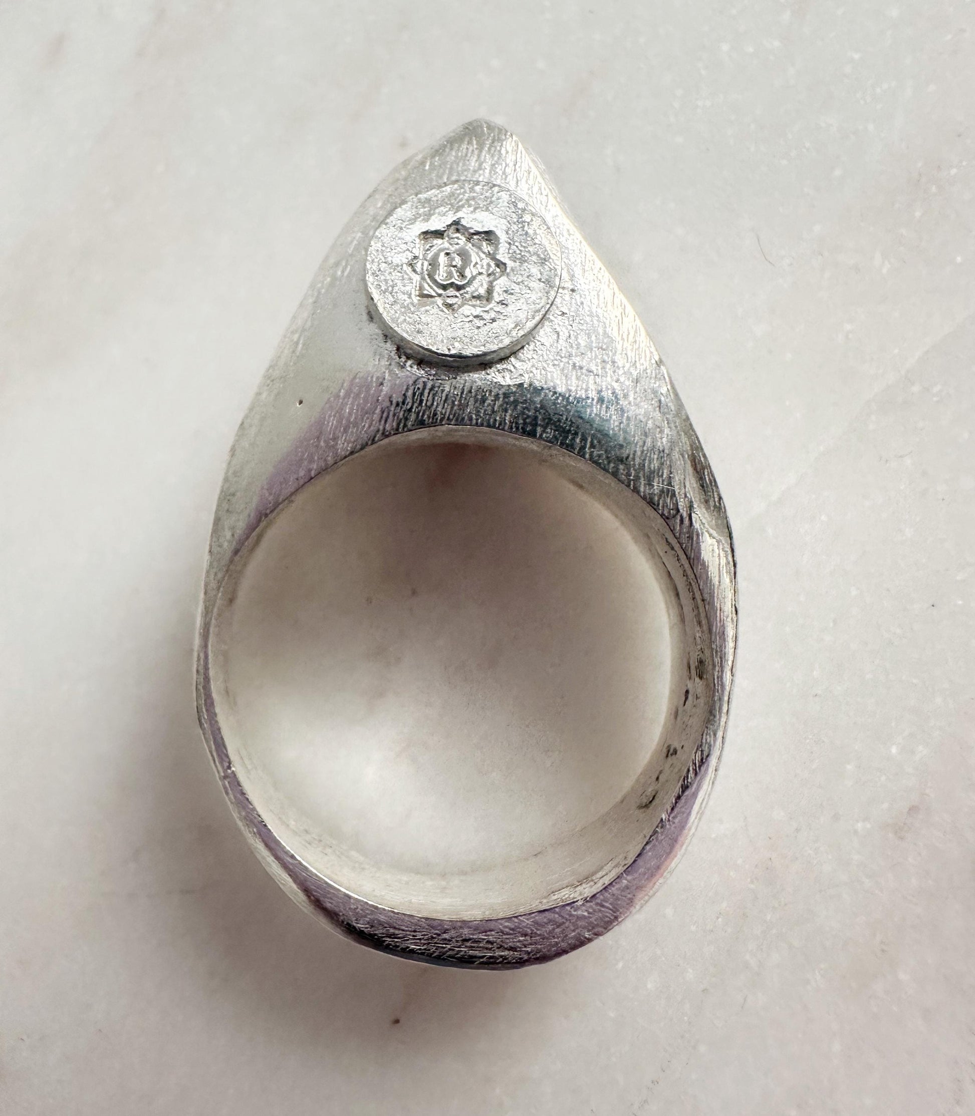 The ring base was carved out of wax for the mold and I sandcasted the ring. Then I sawed the excess off filed, and sanded the ring till smooth. It is hallmark with 925 and it has my logo on the back side of the piece. Measurements: Ring is a sized women's size 7 US. Since this ring is handmade organic, it is not perfect. All of my jewelry is lead free and nickel free and is made in the U.S. This ring comes in a box and ribbon and is shipped in a small box once payment is received. Have a good day!