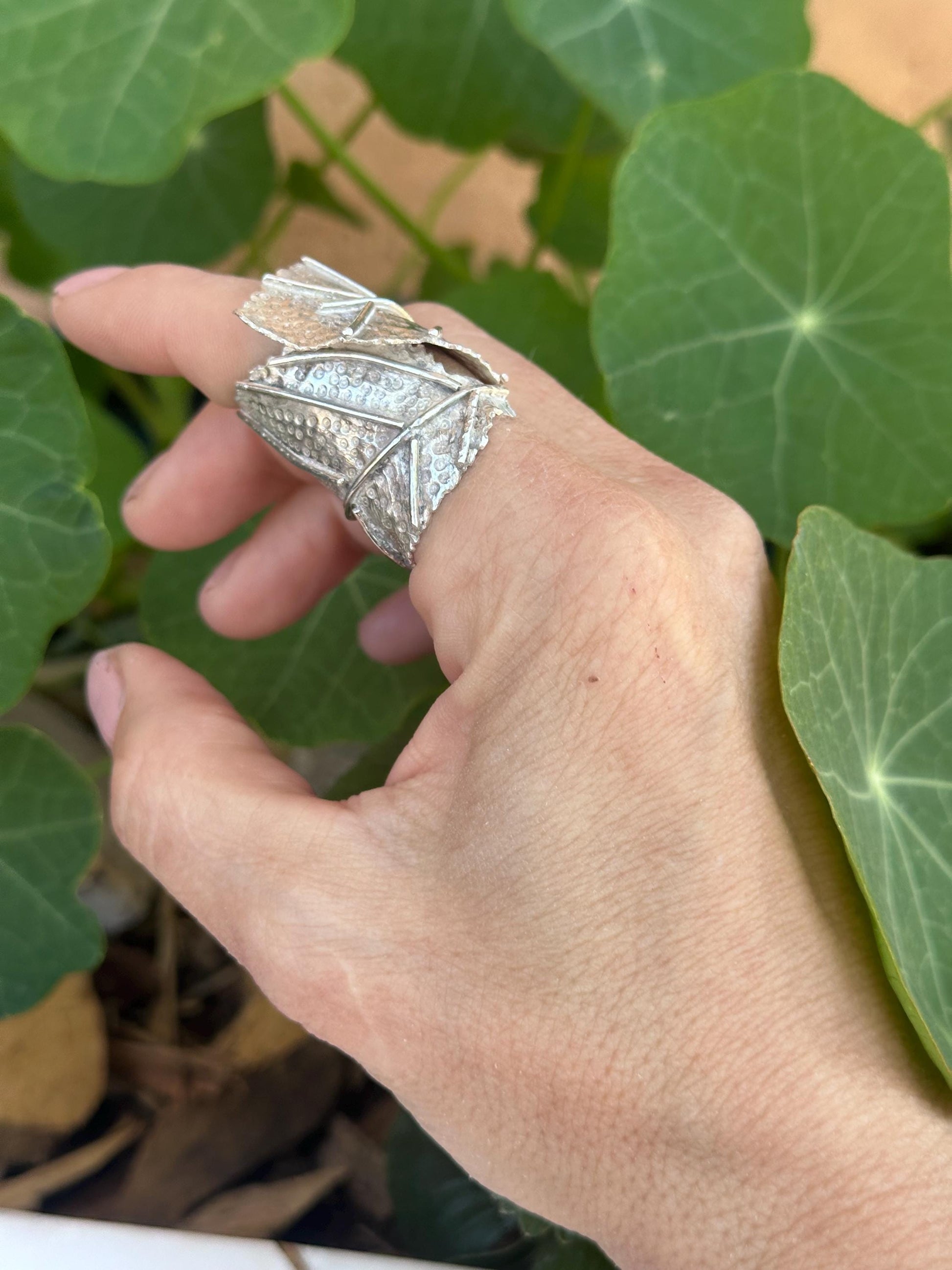 Handmade Sterling Silver Statement Wrap Sage Leaf Ring
